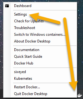 Docker downloads all the Kubernetes components and sets them up. That can take a few minutes too. When the Docker logo and the Kubernetes logo in the UI are both green, everything is running.